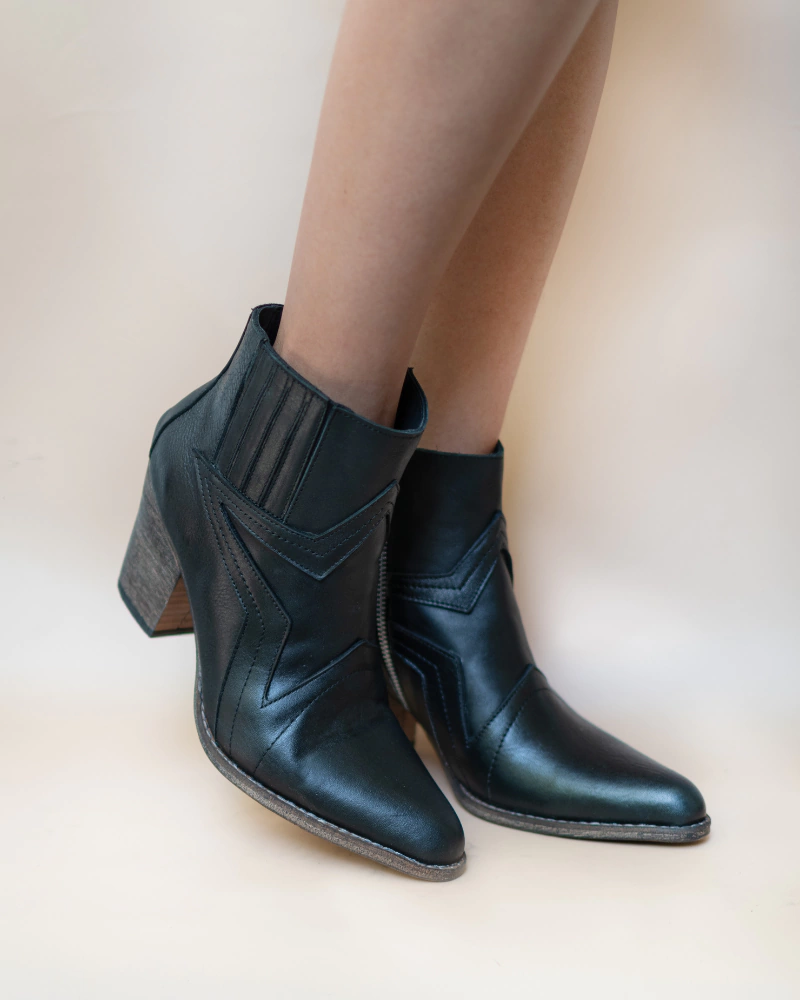 Botineta de 100% color negro, con taco de madera de 4,5 cm y caña de 11,5cm. Ideales para las cuatro estaciones. Hecho en argentina, producto artesanal.