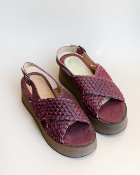 Sandalias 100% cuero en color bordo base eva a contra tono de 6cm. Hebilla metalica para ajustar. La tira tiene detalles trenzados.Del 35 al 40Horma: estándar. Si estas entre dos números recomendamos comprar tu numero habitual.Envíos a todo el país a cargo del cliente salvo promociones. Los cambios son a cargo del cliente.Si sos de CABA recibilo en menos de 24 hs (días hábiles).