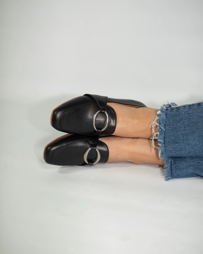 Mocasín 100% cuero, interior color brandy, exterior color negro. Hebilla color plata. Taco de un 1,5 cm y punta cuadrada. Con suelin punta de diamante en el taco, un excelente calce y muy livianos. Cancheras, básicas, comodísimas. Industria 100% nacional.